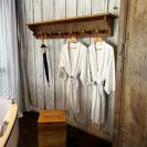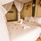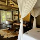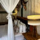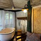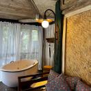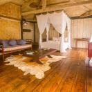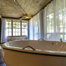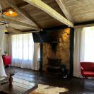 Uma casa de madeira, muito aconchegante e charmosa. Possui lareira, banheira de hidromassagem cama queen, minibar, tv a cabo e etc.