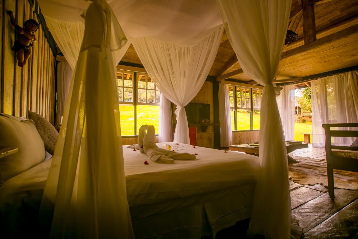 Uma casa de madeira, muito aconchegante e charmosa. Possui lareira, banheira de hidromassagem cama queen, minibar, tv a cabo e etc.